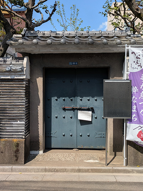 1つ目の曲がり角を左に曲がるとそこに、平賀源内の墓があります。入口は鉄扉で、かんぬきがかかっています。(帰る時には閉めるよう、注意書きがありました。)